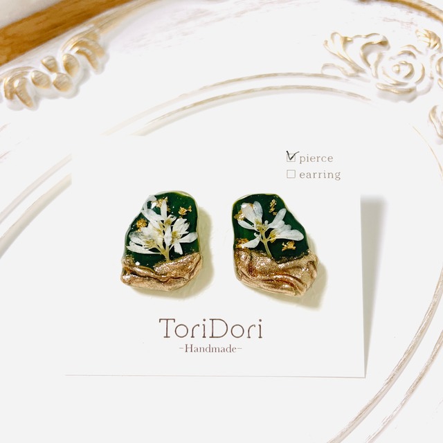 ※こちらは【ダークグリーン】の販売ページです 中央にユーフォルビアの押し花をあしらい、 ゴールドカラーを散りばめて装飾。 上品な大人かわいい耳飾りです。 オールシーズン使いやすい、 ゴールドモチーフ✨ 小粒なので 秋冬のストール・マフラーの邪魔にならず 相性抜群です。 ✱こちらの商品は 【ピアス】【イヤリング】から金具をお選び頂けます。 ✱金属アレルギー対応金具をご希望(+100円)の場合は、オプションより選択ください。 ✱レジンを使用しています。レジンアレルギーの方はご注意ください。 ⋆┈┈┈┈┈┈┈┈┈┈┈┈┈┈┈⋆ 大人かわいい 可愛い カワイイ 上品 シンプル さりげない 緑 深みカラー ユーフォルビア ホワイト グリーン ゴールド 金 白 個性的 ドライフラワー ひと粒 スタッド クリップ式 デート 女子会 食事会 サージカルステンレス 中間色 大人っぽい