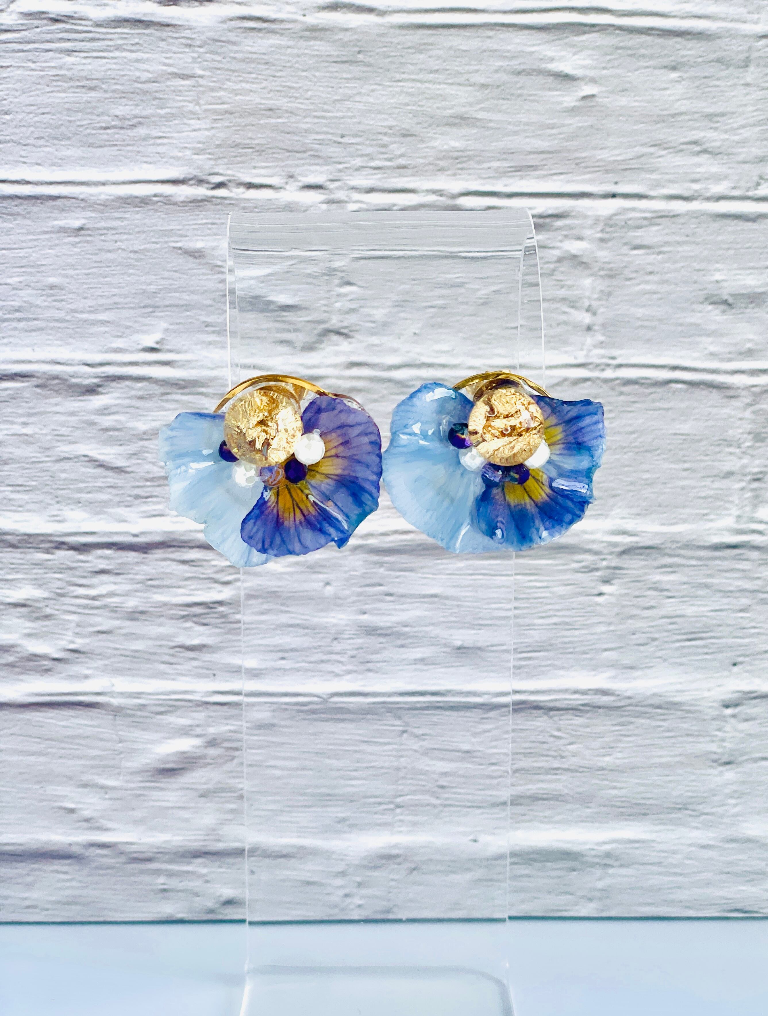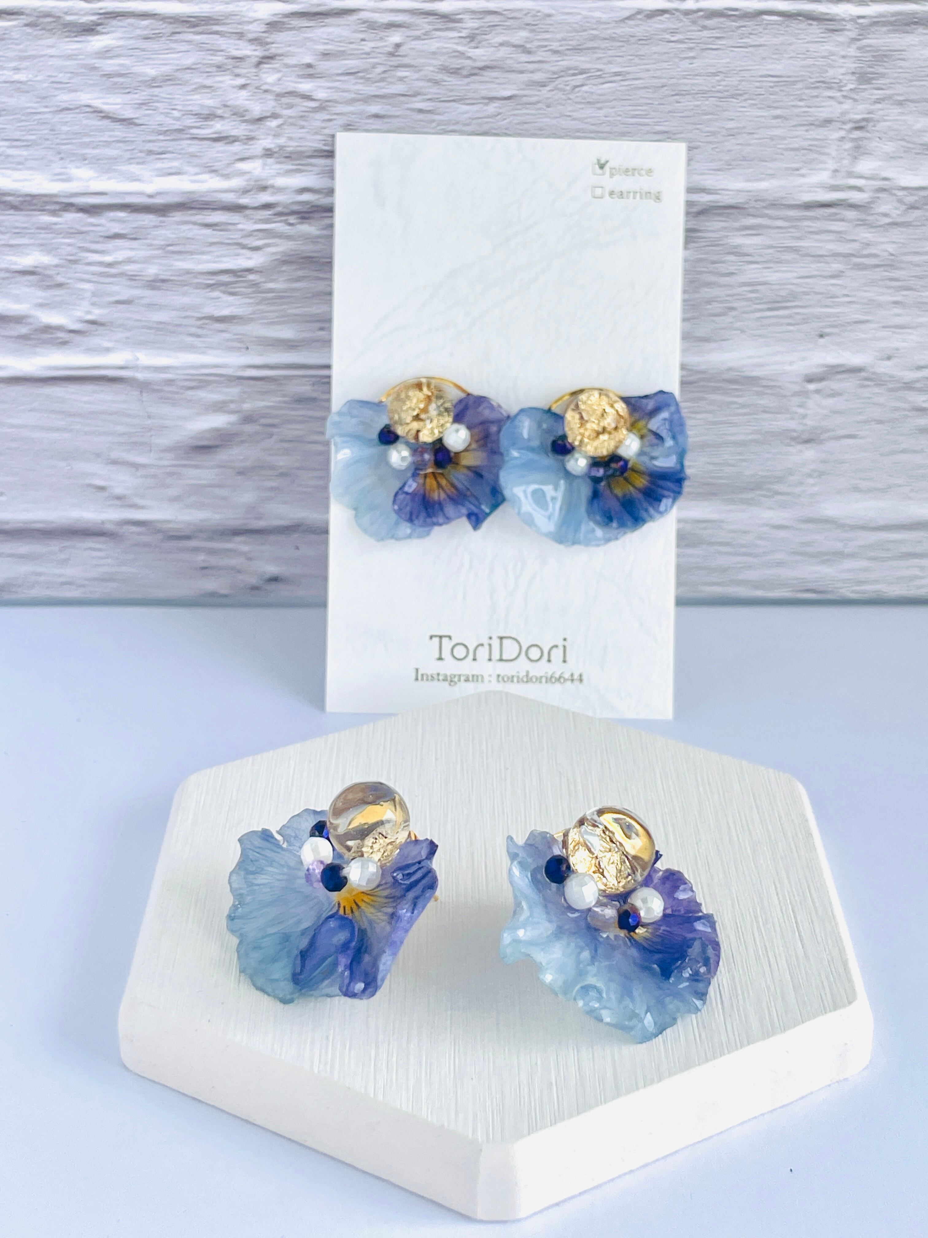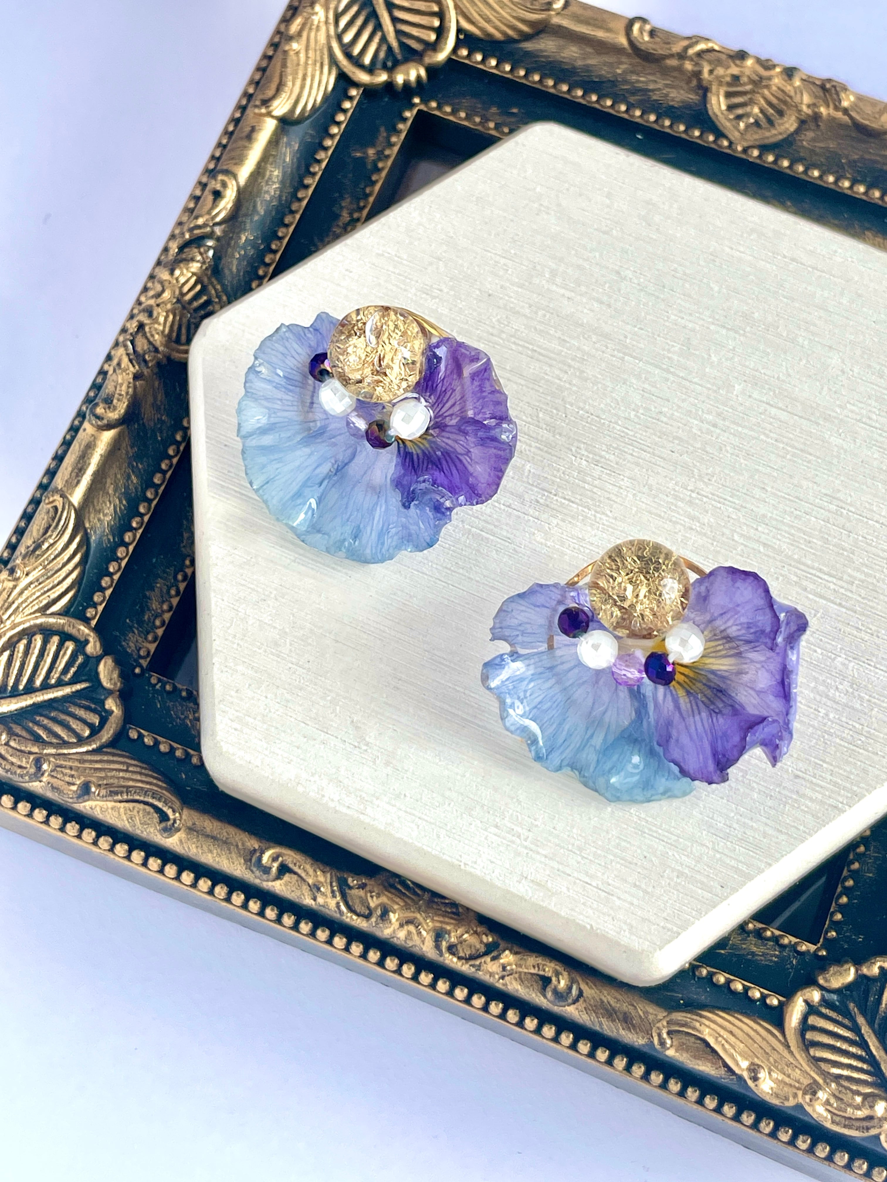 フリルビオラ ピアス イヤリング アクセサリー おしゃれ 上品 軽やか ハンドメイド デート 女性らしさ ナチュラル シンプル 美しい 透明感 特別な日 デイリー使い コーディネート 華やか カジュアル ドライフラワー かわいい さりげない お花 耳飾り クリスタル ハンドメイドアクセサリー 春 夏 鮮やか 詩的な 色合い ひとつぶ 小さい ミニチュアナチュラル 透明感 秋 冬
