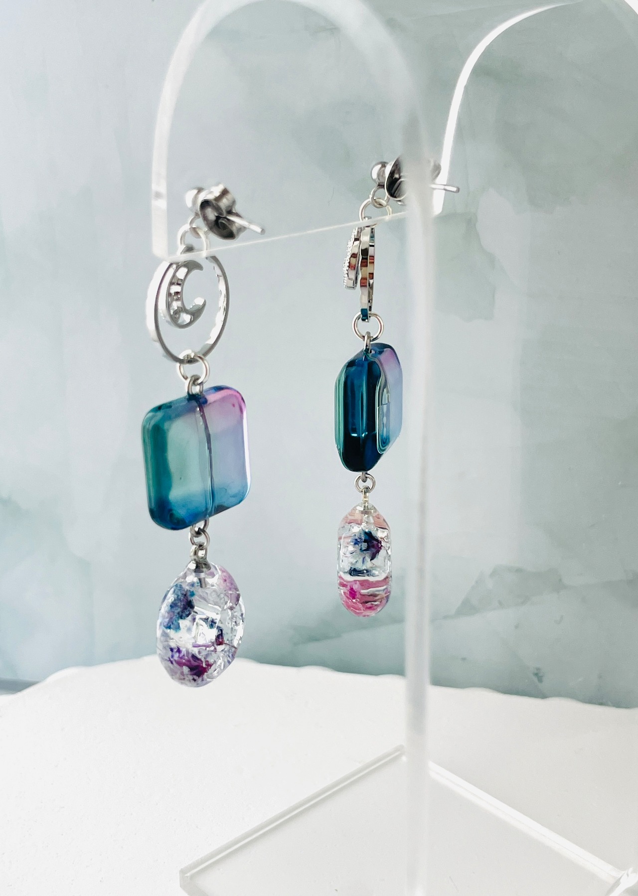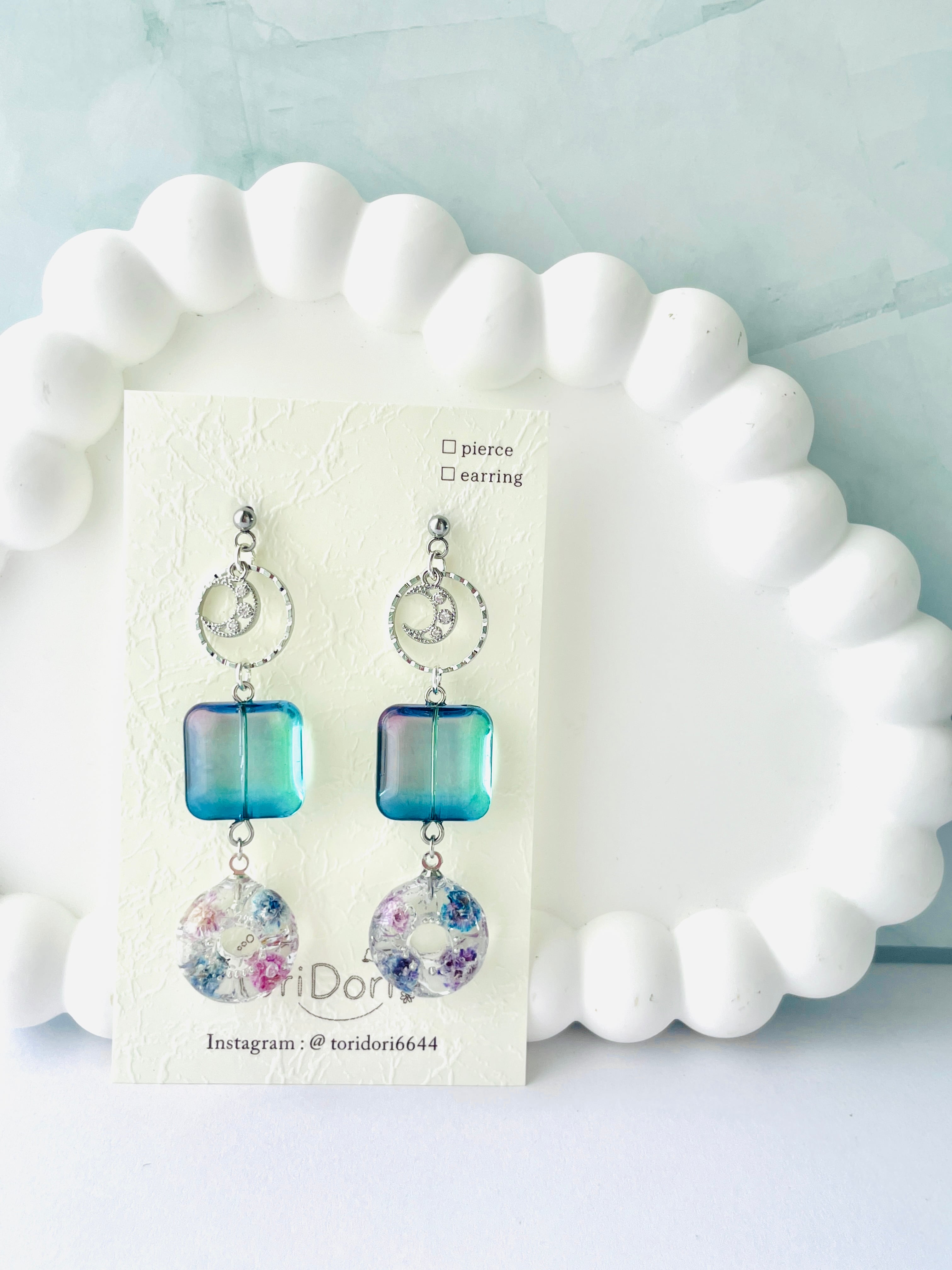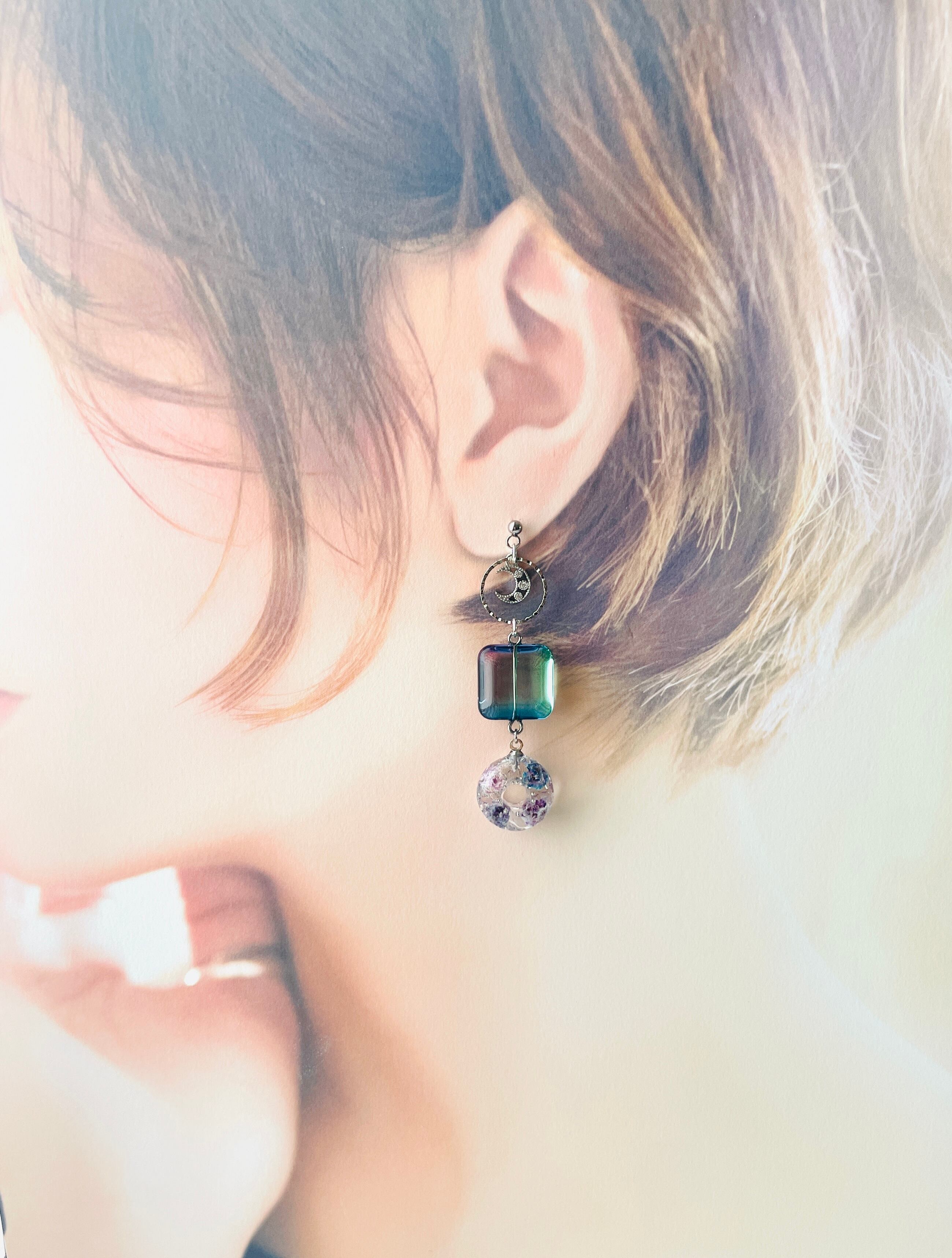 耳飾り ピアス イヤリング アクセサリー おしゃれ 上品 軽やか ハンドメイド デート 女性らしさ ナチュラル シンプル 美しい 透明感 特別な日 デイリー使い コーディネート 華やか 情景 清楚 女性らしさ ドライフラワー かすみそう かすみ草 カスミソウ かわいい お花 レジン ゆらゆら 揺れる おしゃれな耳飾り 上品 可愛らしい さり気ない 春 夏 秋 冬 鮮やか 色合い リング ドーナツ 四角 スクエア 丸 大人可愛い おとなかわいい クリア 空 グラデーション 月 デザイン クリップ式 蝶バネ式 青 ブルー 紫 グリーン 緑 パープル ピンク シルバー 夜 三日月 月 ムーン ジルコニア キュービックジルコニア サージカルステンレス