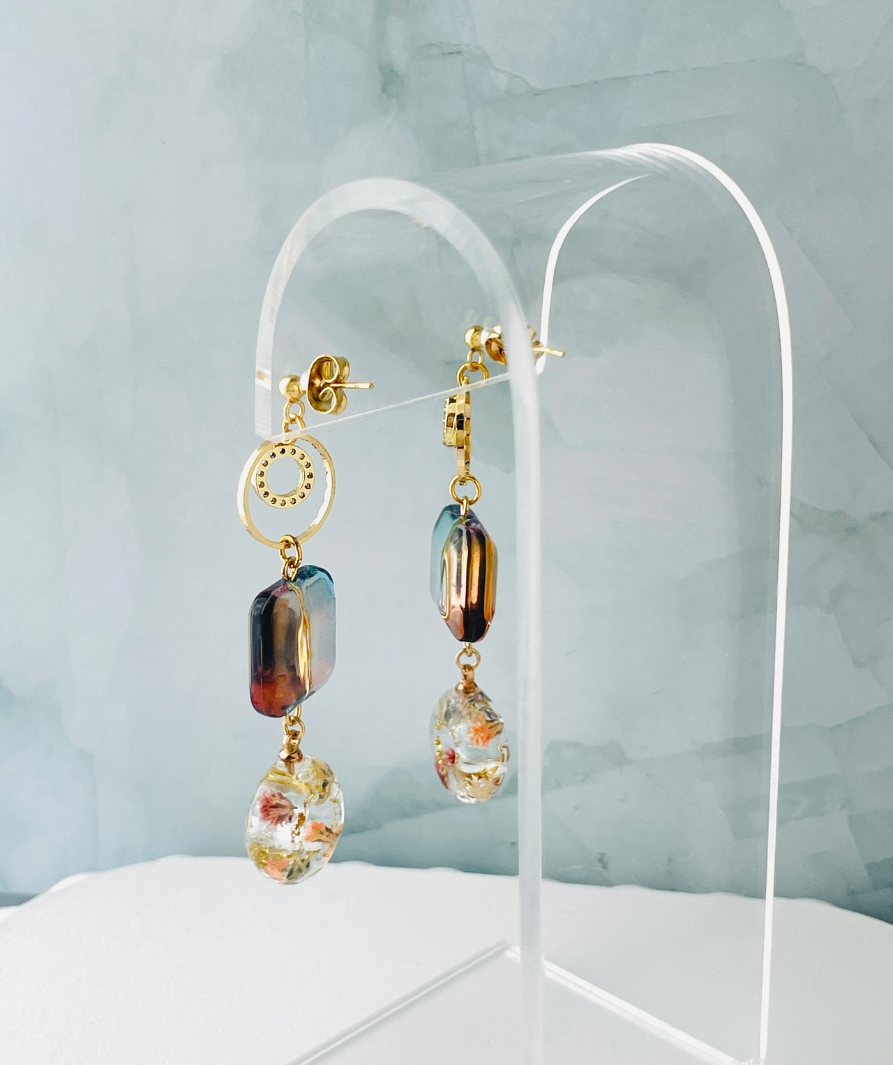 夕焼けの美しさをイメージした、華やかで心温まる色合いの耳飾り。