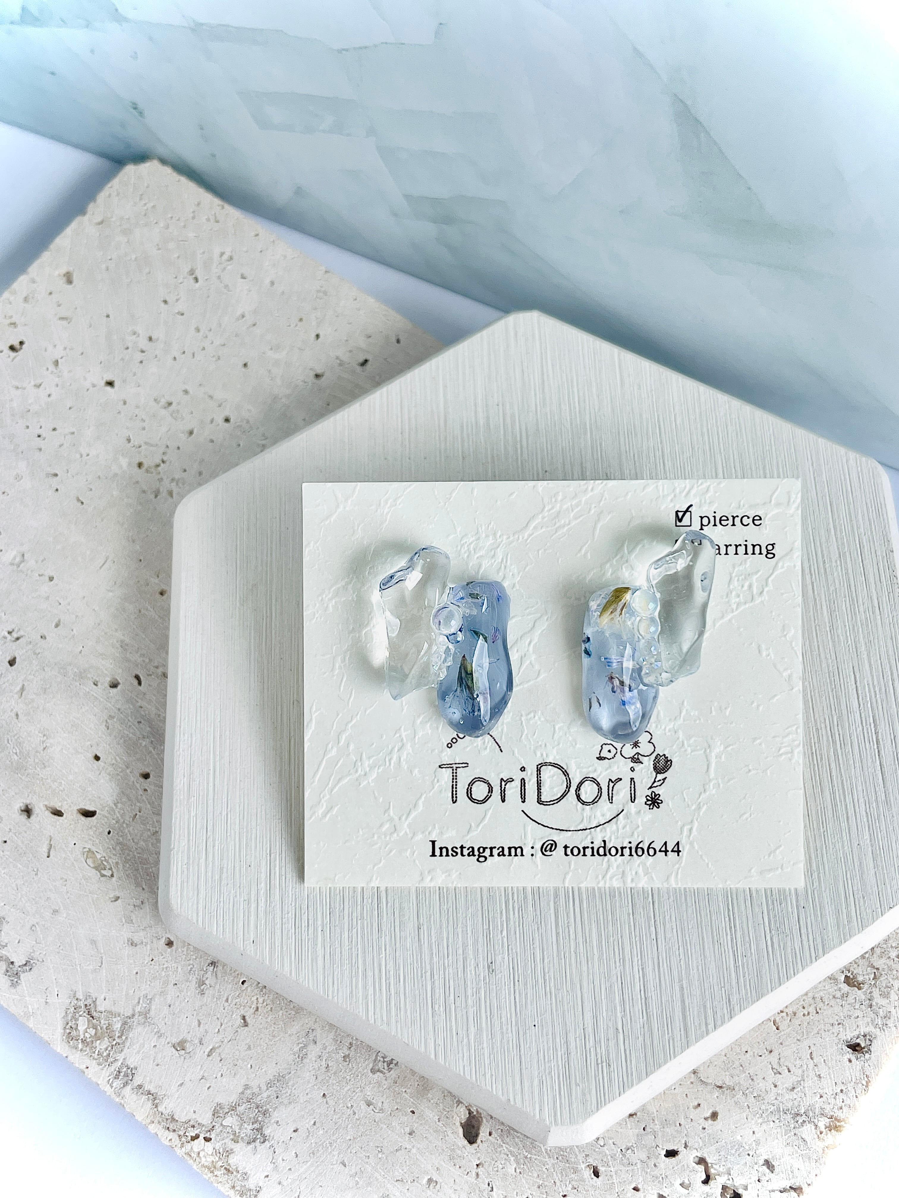 耳飾り ピアス イヤリング アクセサリー おしゃれ 上品 軽やか ハンドメイド デート 女性らしさ ナチュラル シンプル 美しい 透明感 特別な日 デイリー使い コーディネート 華やか モーブブルー 鉱石 清楚 優雅な耳飾り 上品 可愛らしい さり気ない 春 夏 冬 くすみカラー 色合い 個性的 鉱石 ニュアンス 大人可愛い おとなかわいい クリア 透明感あふれる サージカルステンレス 鉱石デザイン 青 ブルー 水色 ブルーグレー ワンポイント 小粒 一粒 ナチュラル 自然 さりげない