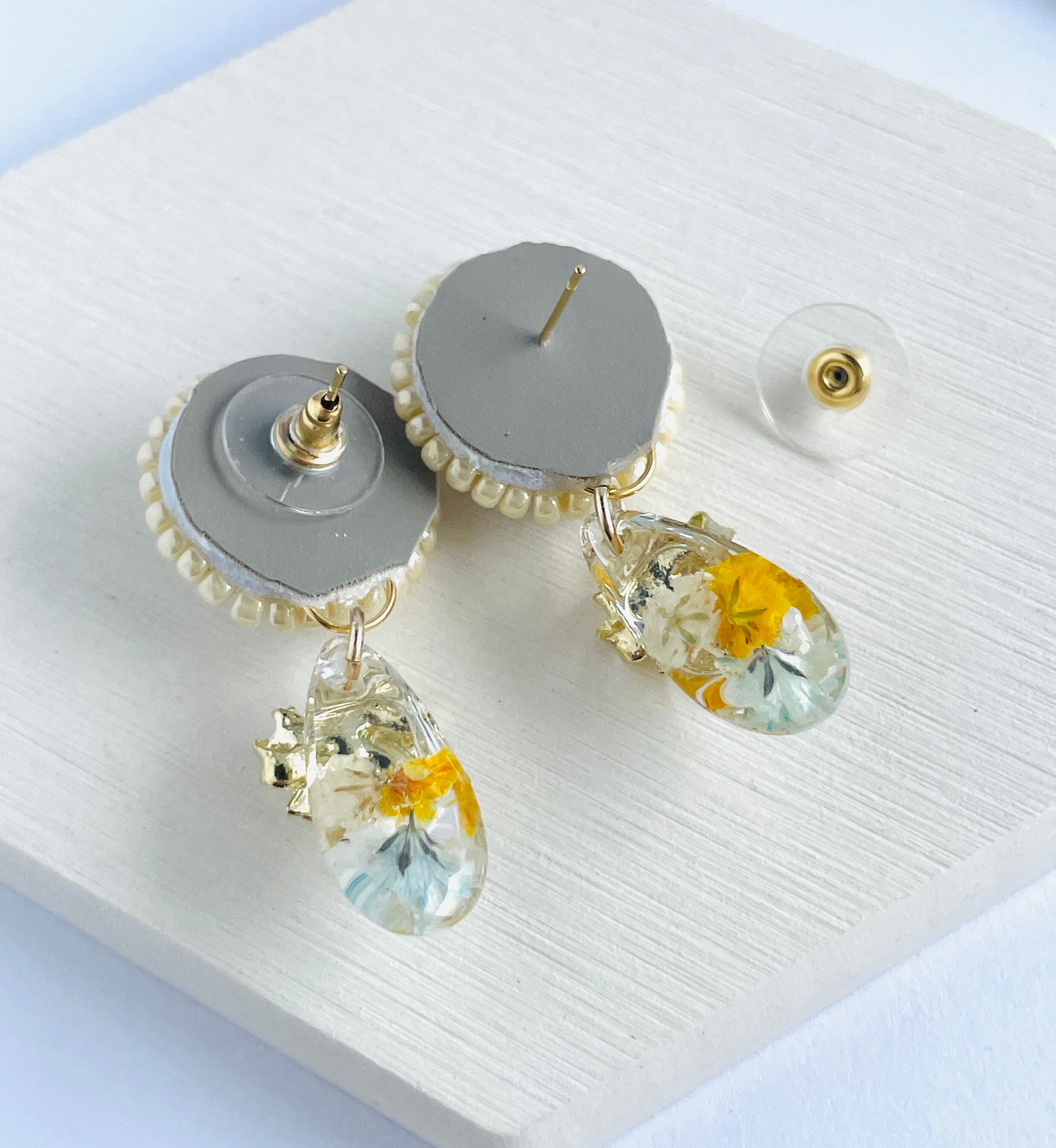 可憐なカスミソウが咲き誇る、ガーリーな魅力あふれる耳飾りです。