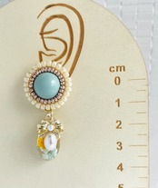 ブルーのドーム型カボションに小さなビーズをあしらったパーツは