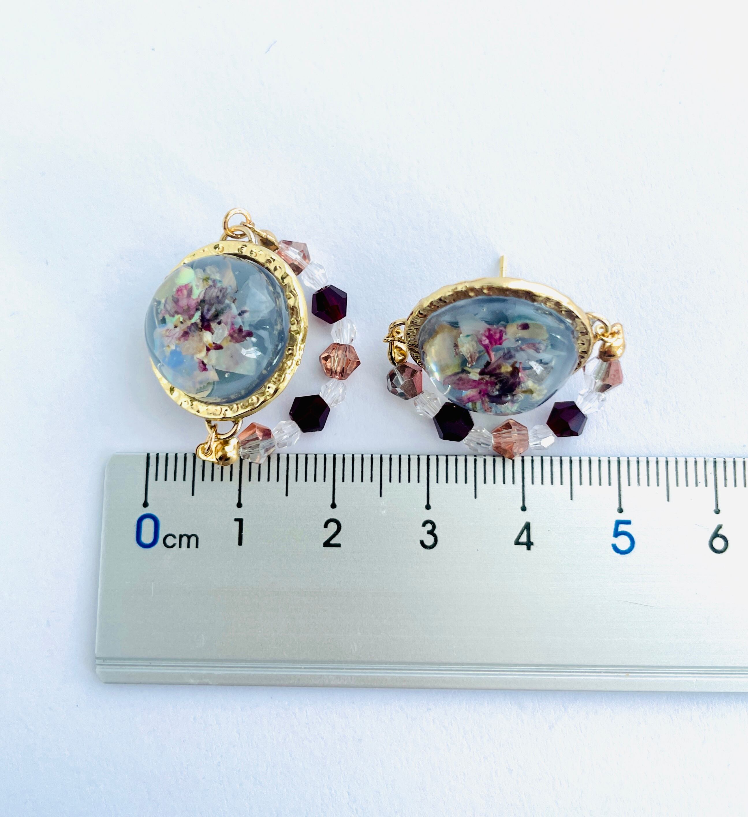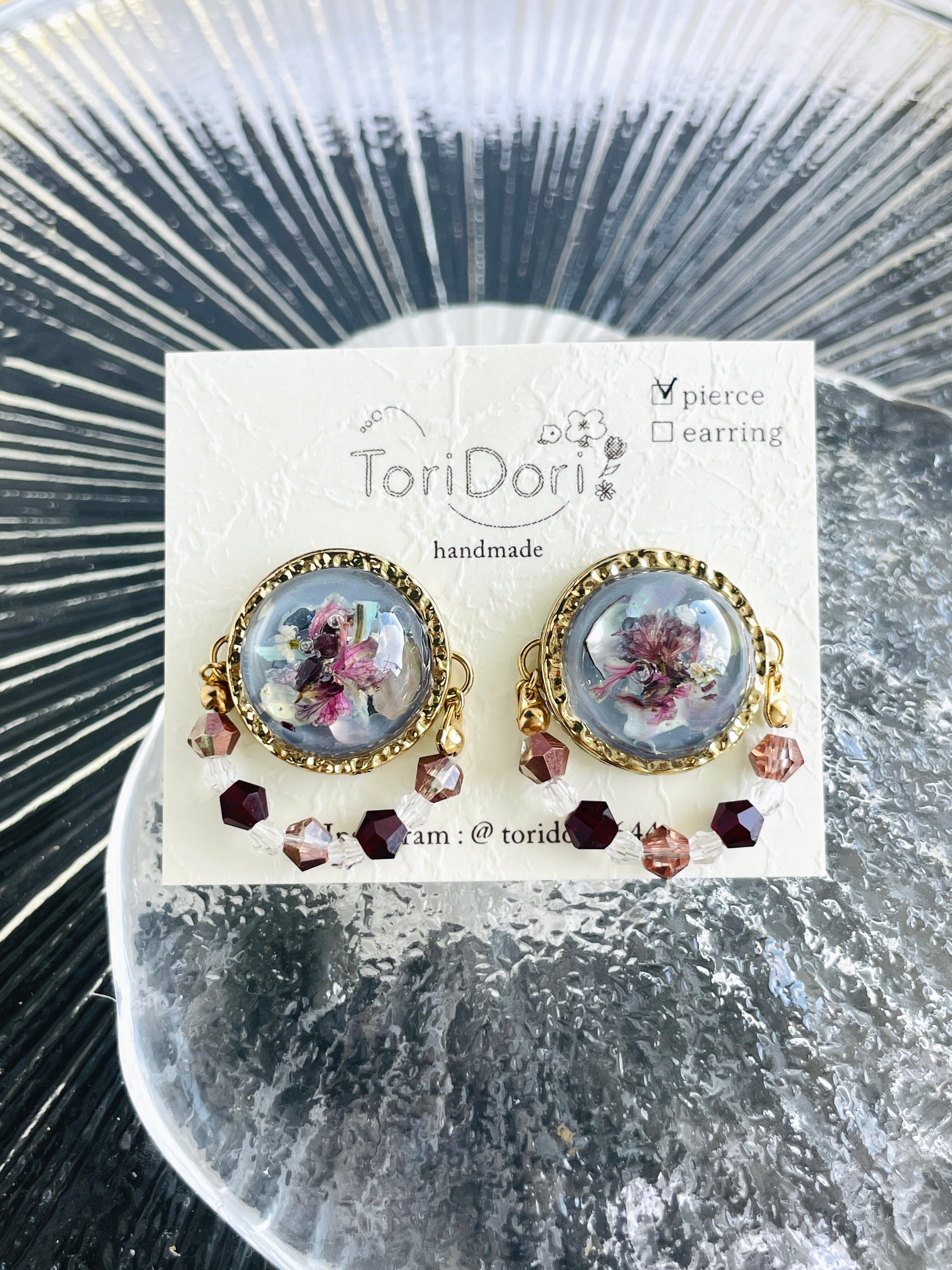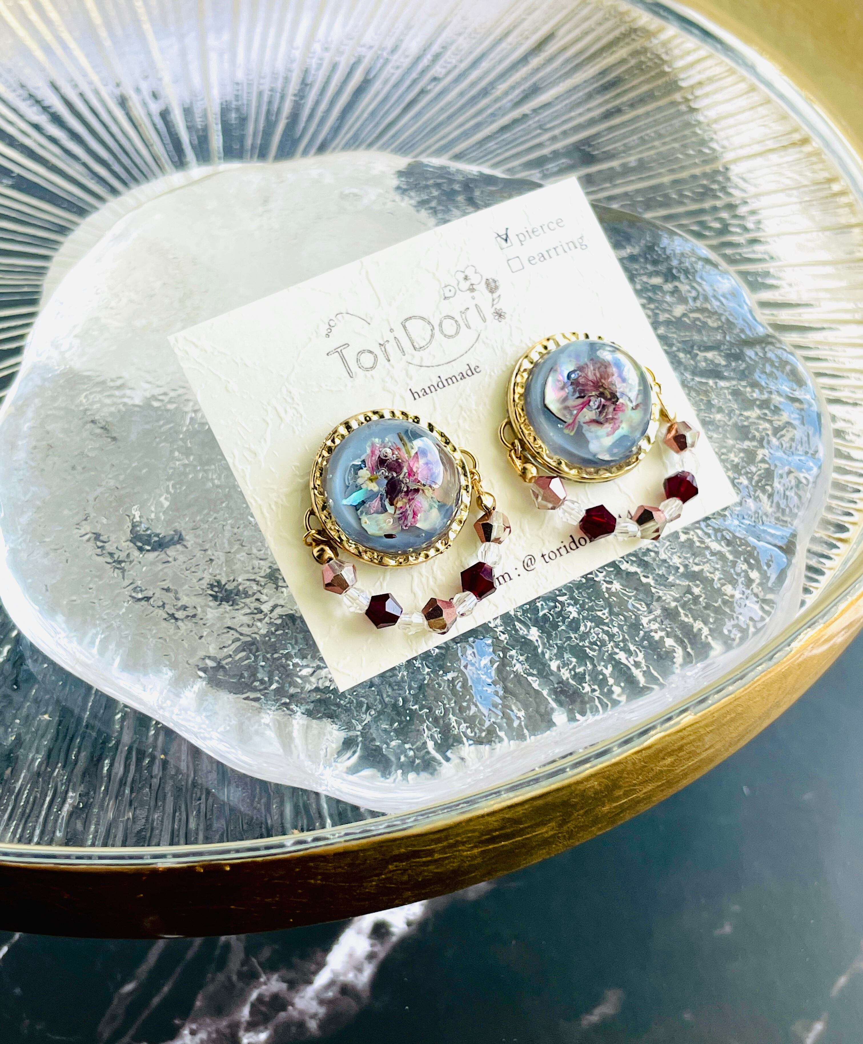 耳飾り ピアス イヤリング アクセサリー おしゃれ 上品 軽やか ハンドメイド デート 女性らしさ ナチュラル シンプル 美しい 透明感 特別な日 デイリー使い コーディネート 華やか 花びら シルバー 清楚 優雅な耳飾り 上品 可愛らしい さり気ない 春 夏 秋 冬 色合い 個性的 ドライフラワー ナチュラル 自然 透明感 サージカルステンレス アクセント デザイン 揺れる フラワー 小花 オールシーズン 万能アイテム クリア 透明 スタッドピアス 大人っぽい ウエディング パーティ 一粒 揺れる 半球 クリップ式 蝶バネ シェル カスミソウ レースフラワー プレシオサ ブラウン ゴールド 金 パープル ピンク
