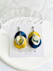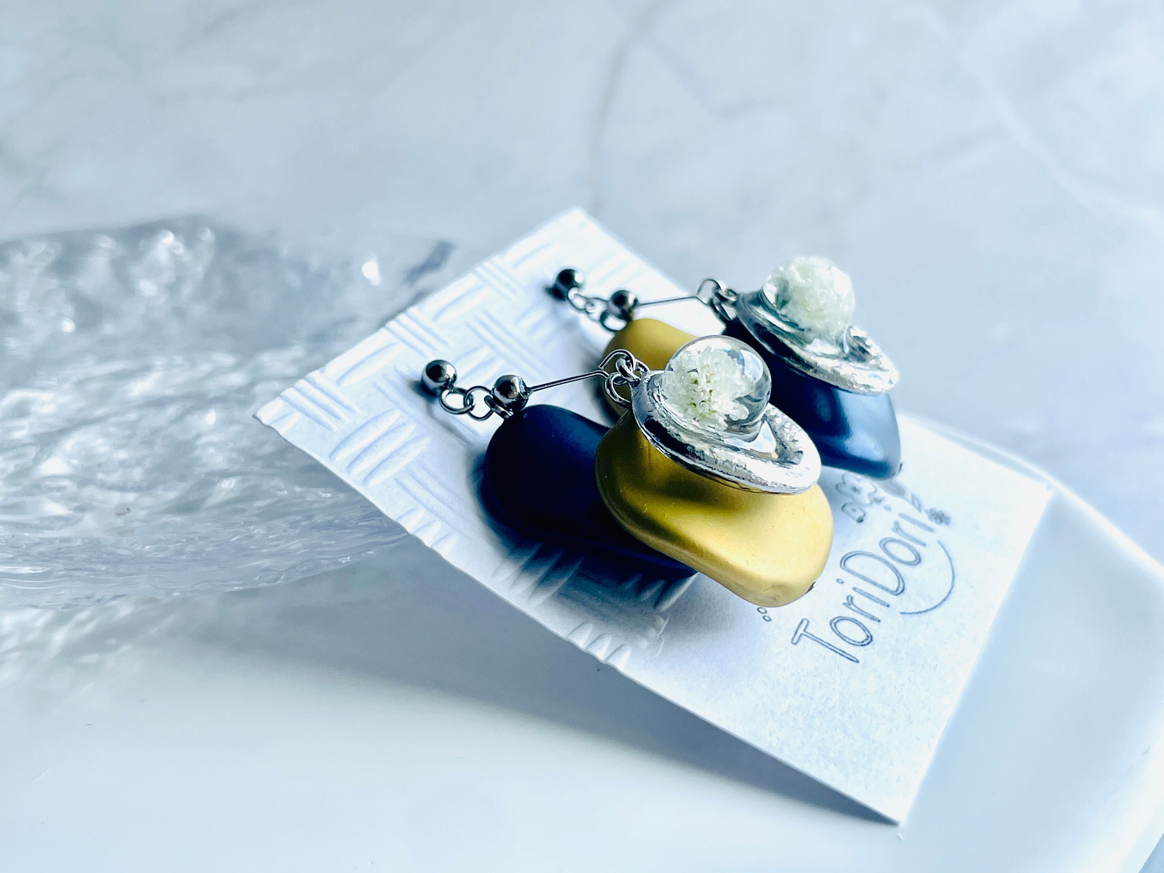 ■メタリックツートンカラー 揺れるカスミソウピアス(ブルー&マスタード)