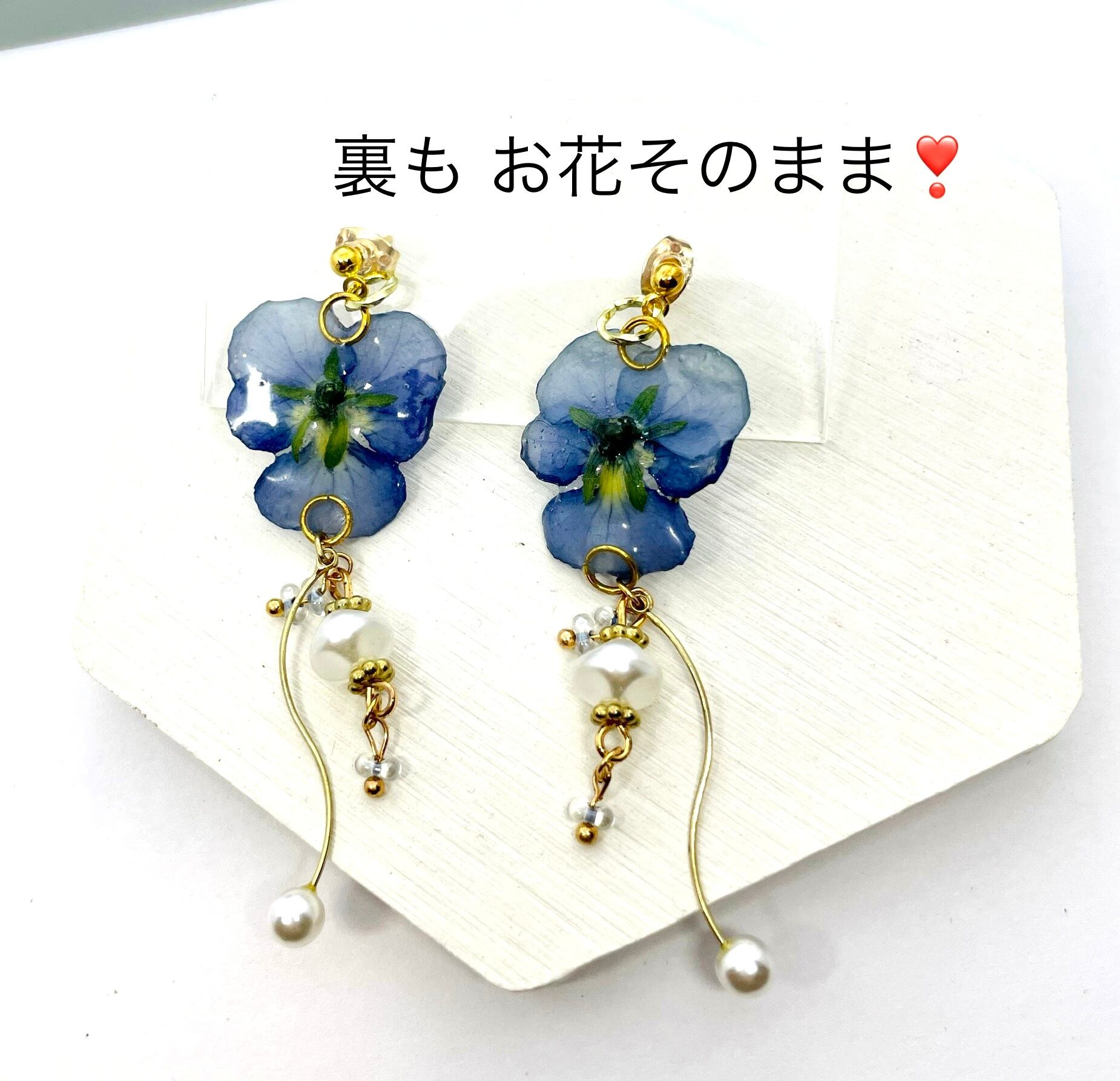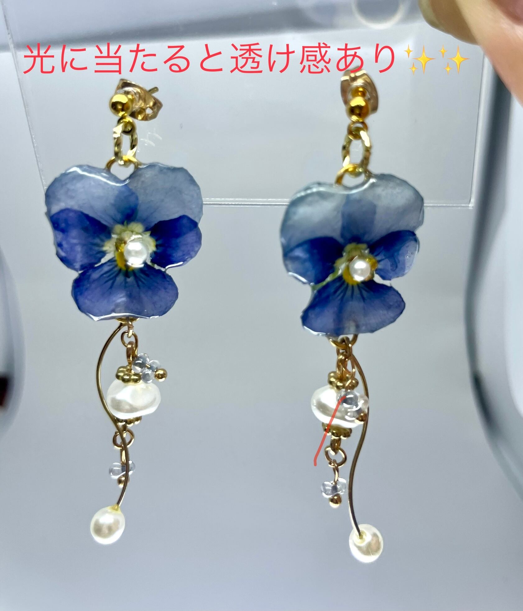 ビオラと、繊細なパールが揺れるデザインは、華やかさと上品さを同時に演出します。