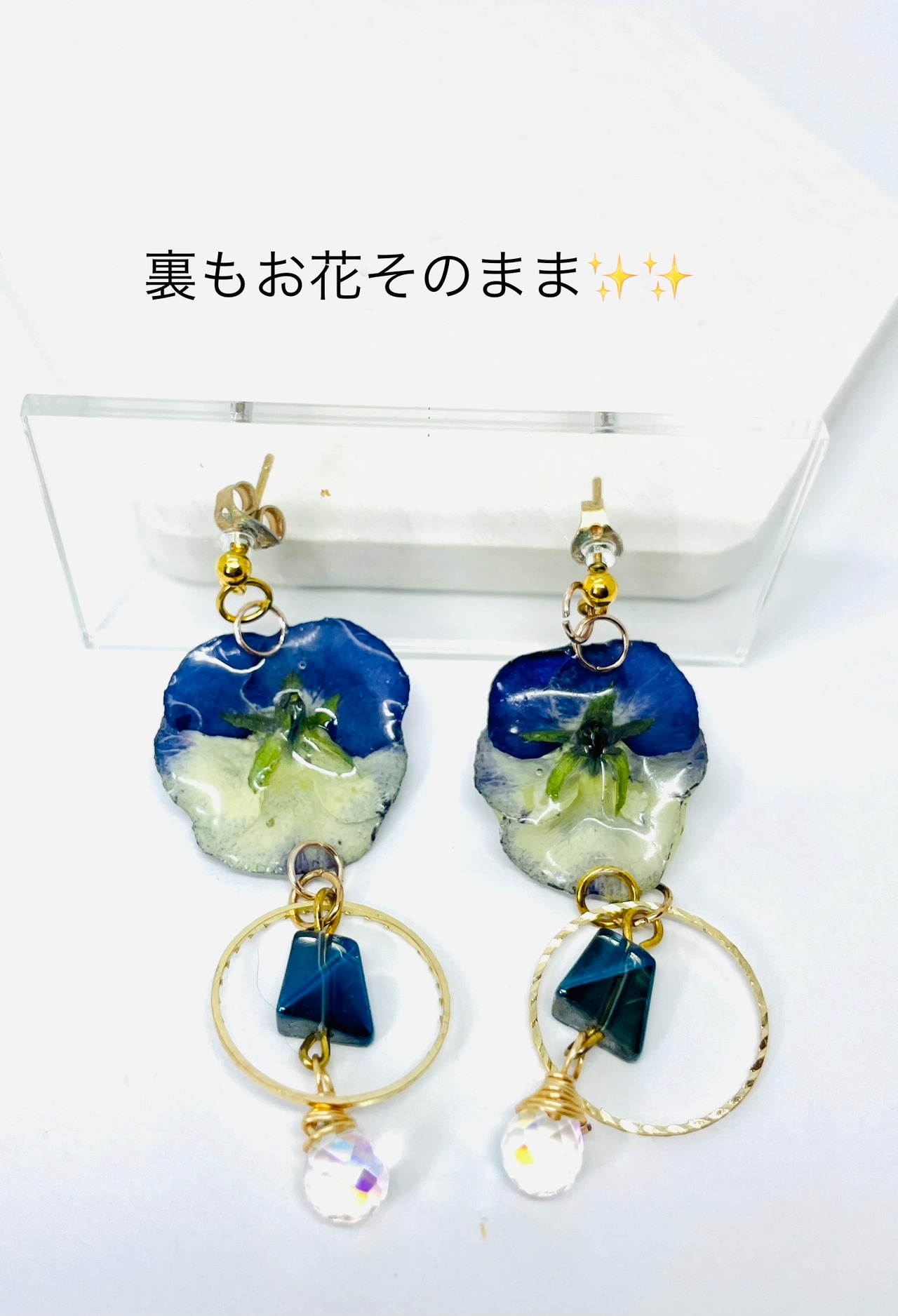 ビオラ(ジョリーフェイス)とオーロラの雫 耳飾り