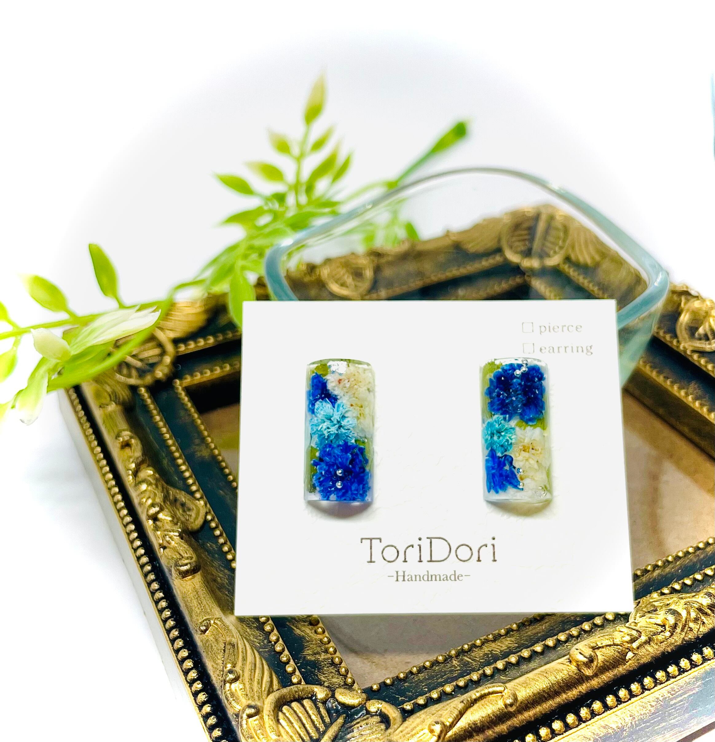 「ビビッドブルーカラー かすみ草のピアス」