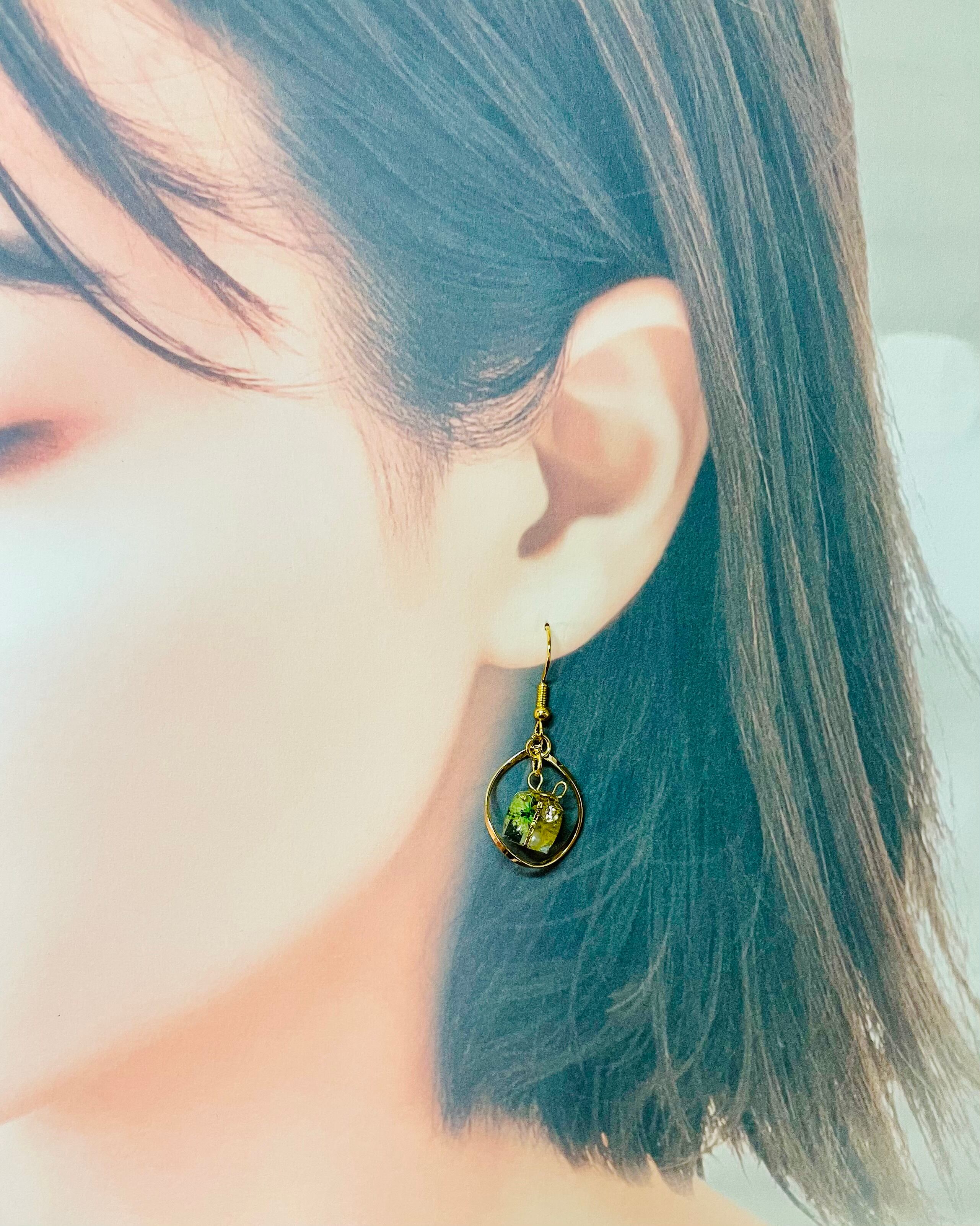 【イエローグリーン】かすみ草のギフトボックス ピアス