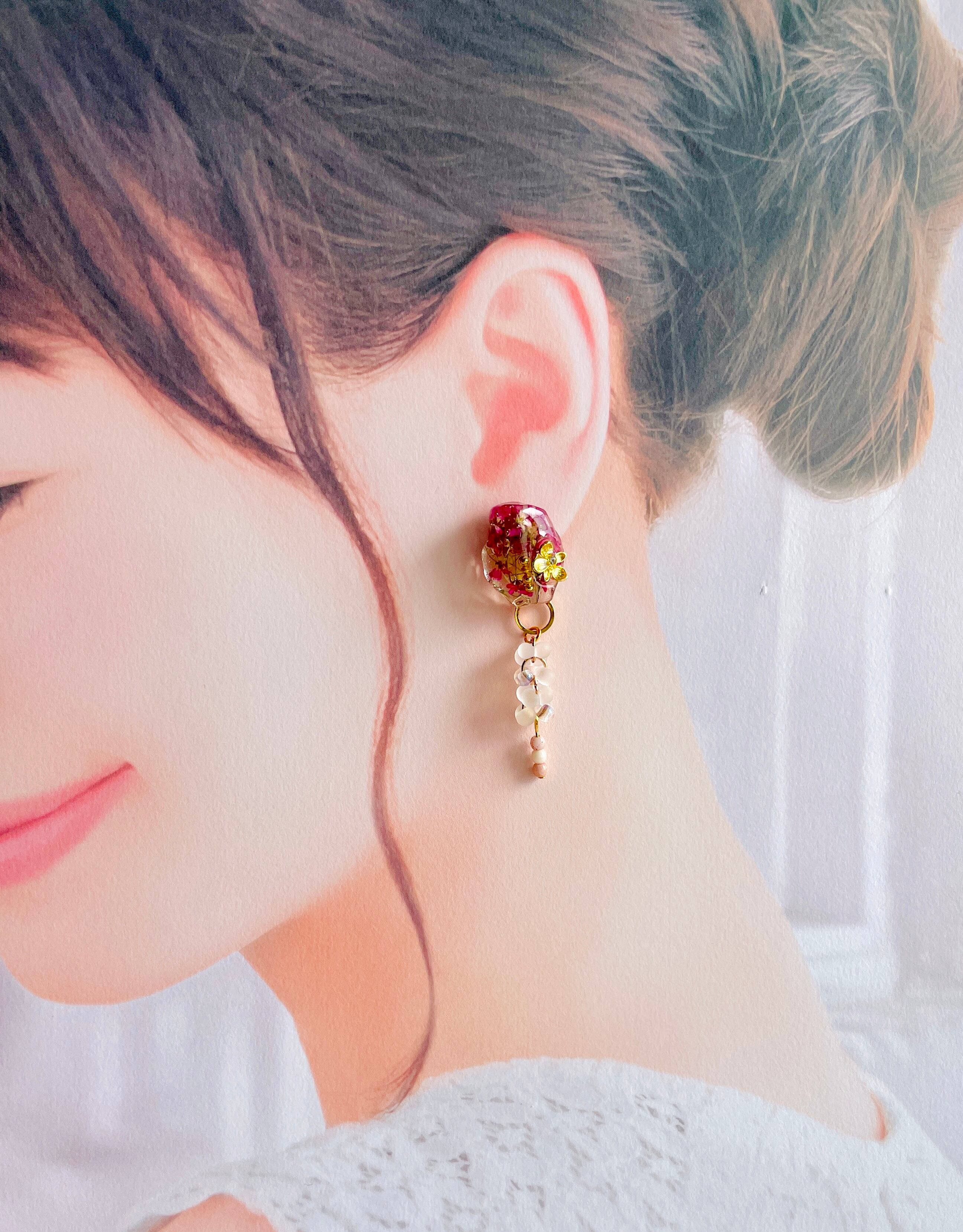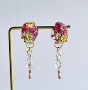 フラワー 小花 ピンク 紫 クリア ファルファーレ ビーズ フロスト スタッド クリップ式 大ぶり スイング スウィング 揺れる デート 女性らしさ 繊細 暖色 春 オールシーズン
