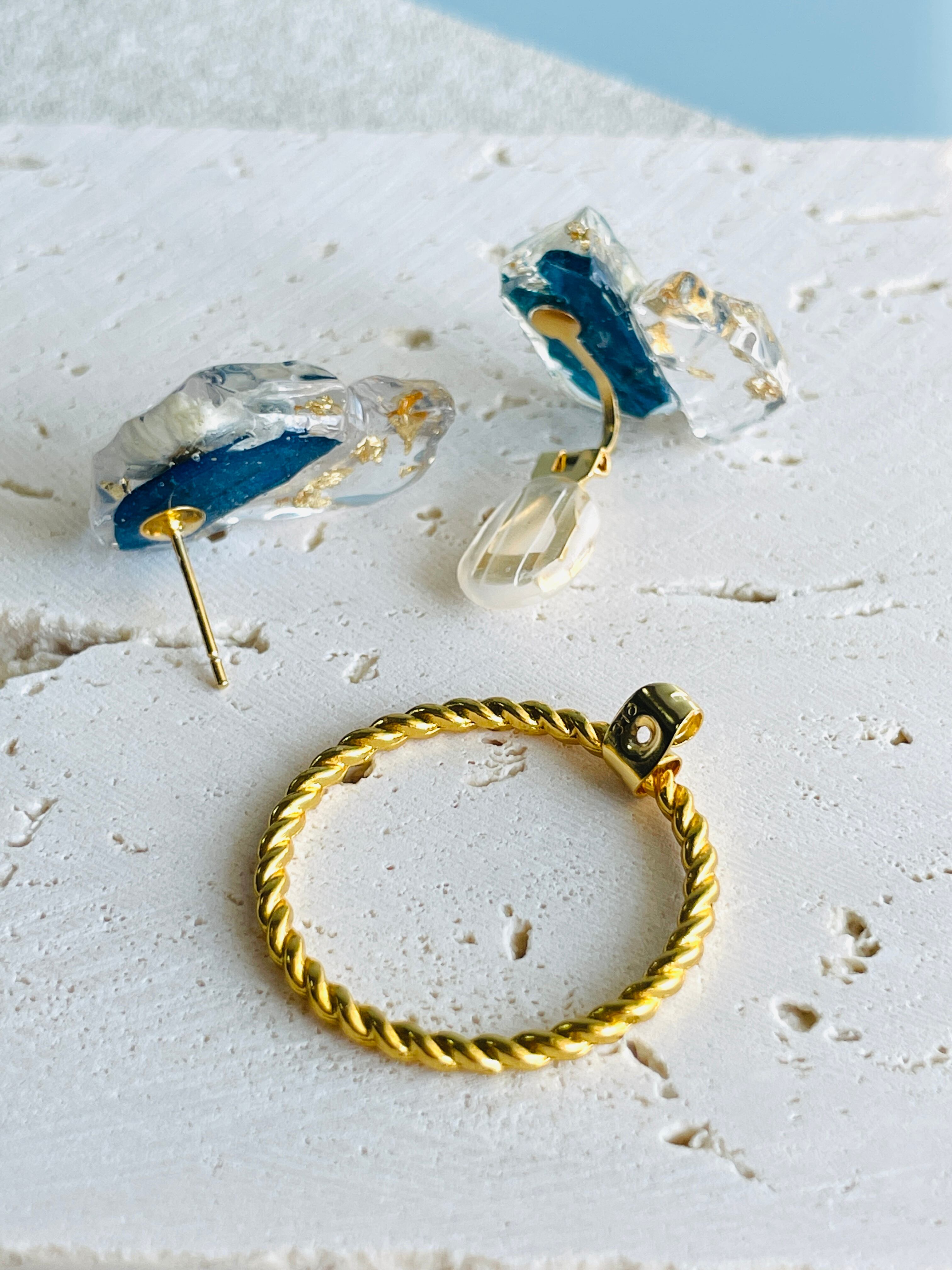 イヤリング→フープを耳たぶ下に掛けるだけでデザイン変更できます。(10枚目画像を参照ください)