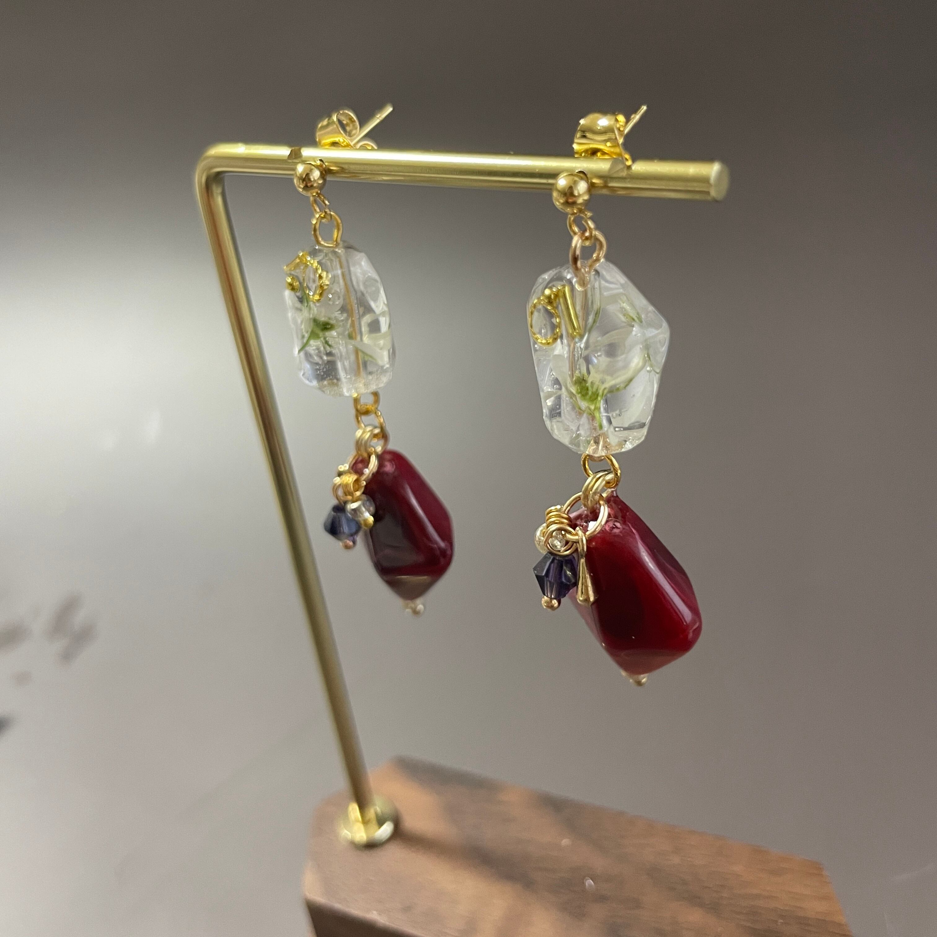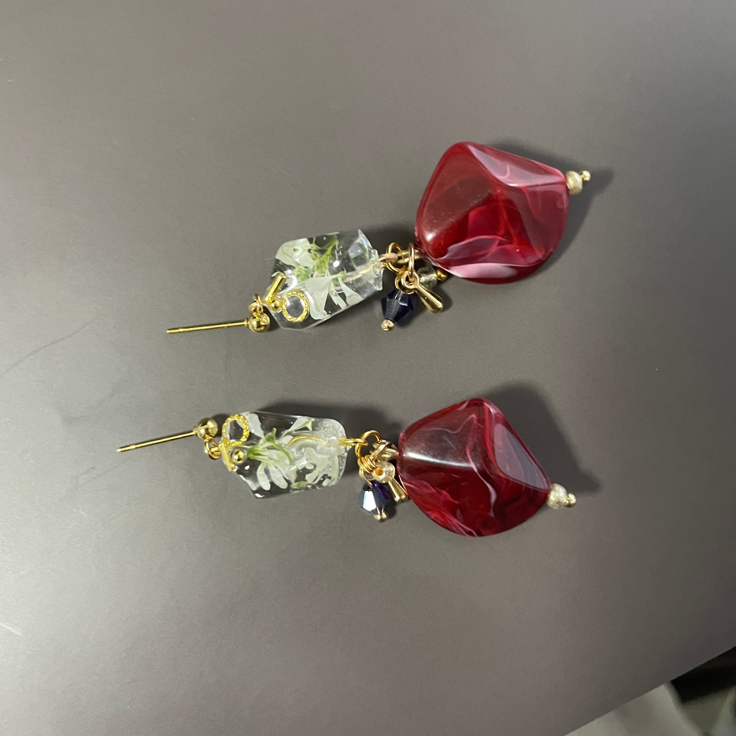ユーフォルビア ボタニカルビーズ ボタニカル ニュアンス マーブル模様 マーブルビーズ おしゃれ 上品 クール カジュアル 高級感 ハンドメイド デート 特別な日 軽やか 軽い 軽量 女性らしさ アクセサリー クリスマス 誕生日 プレゼント 春 夏 コーディネート シンプル 目立つ 華やか スタイリッシュ 自然素材 ドライフラワー ポストピアス イヤリング 透明感 ドライフラワー 白 緑 赤 レッド ワインレッド ロングピアス 揺れる イヤリング